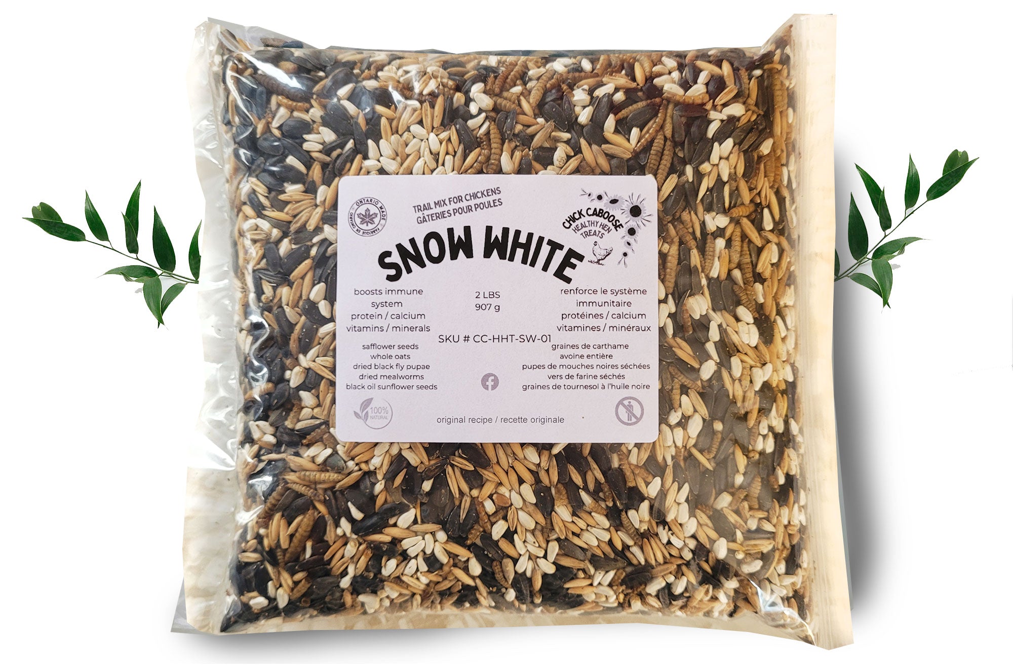The Chick Caboose Healthy Hen Treats are a treat for all your special feathered friends. Snow White is our winter mix made with natural ingredients to improve their general health and eggshell quality during the winter months.